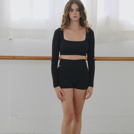 Elegant yet effortless – this long-sleeve square neck crop offers light support with a soft underbust elastic that keeps everything in place.